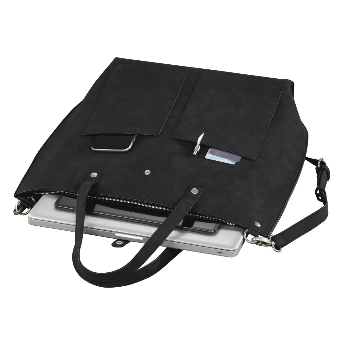 Elegantna ženska torba za prenosnik Classy za diagonale 13,3–14,1″ združuje profesionalen videz, organizirano shranjevanje in zanesljivo zaščito. Premium sintetično usnje z videzom semiša, snemljiv in nastavljiv ramenski trak ter oblazinjeni predal za prenosnik in tablico zagotavljajo udobno in stilsko vsakodnevno potovanje.