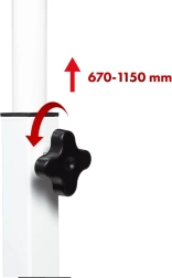 Višino enostavno prilagodite približno v razponu 67–115 cm in s tem podprete ergonomijo pri sedenju in stanju.