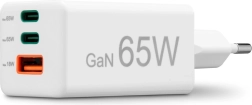 Omrežni polnilnik Hama GaN 65 W s Power Delivery in Quick Charge, 2× USB‑C + 1× USB‑A