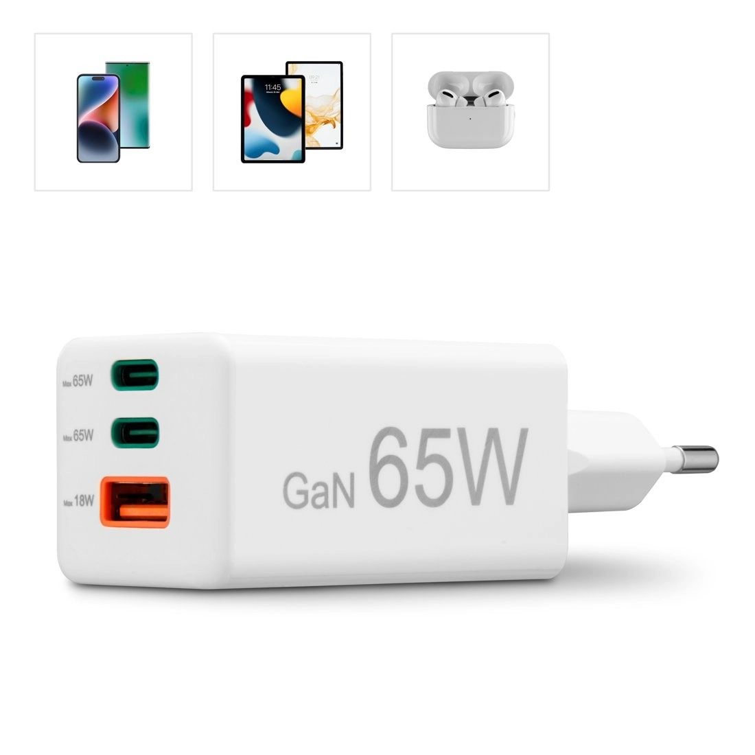Sodobni GaN čipi zagotavljajo visoko učinkovitost, manj toplote in kompaktne mere pri moči do 65 W za hitro polnjenje telefonov, tablic in prenosnikov.