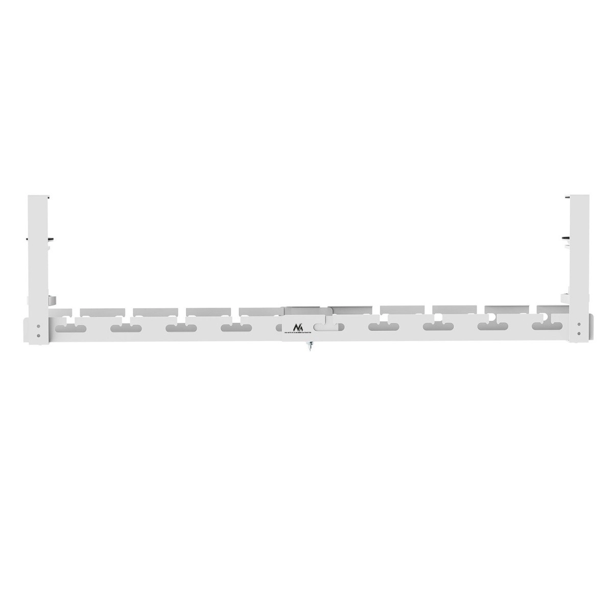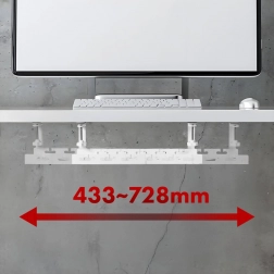 Montaža je hitra: sponkasti nosilci se trdno pritrdijo na ploščo brez vrtanja, organizator pa lahko po potrebi hitro prestavite. Z nastavljivo dolžino 433–728 mm se prilagodi različnim dimenzijam miz in letvam. Elegantna bela izvedba izboljša estetiko delovnega mesta ter poveča varnost, saj kable ohranja stran od tal.