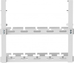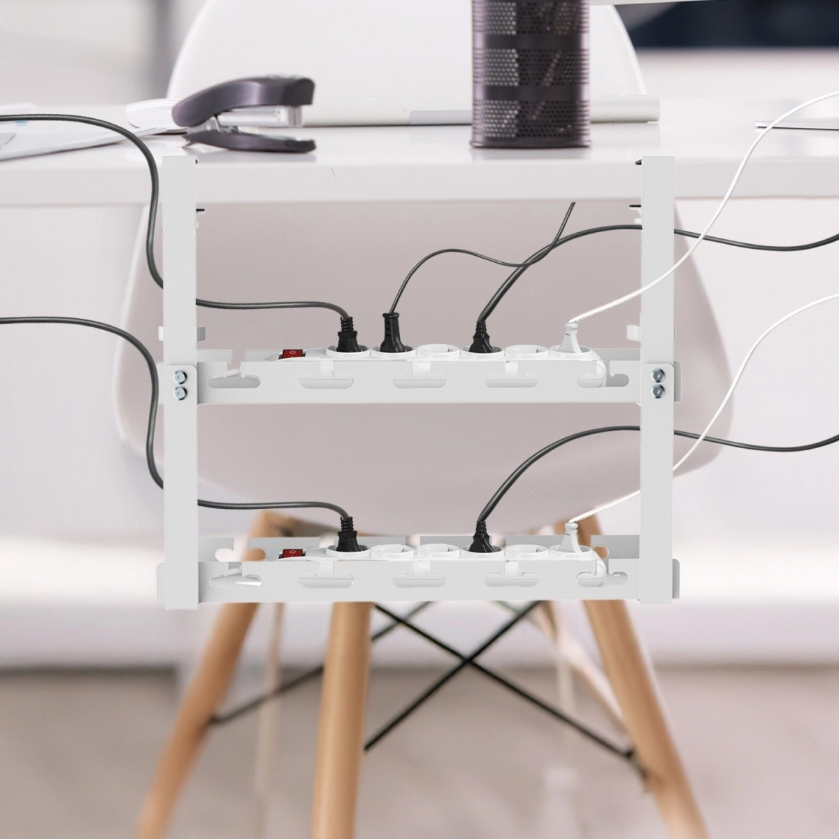 Praktičen dvonivojski organizator kablov pod mizno ploščo je idealen za moderna delovna mesta in igralne postavitve. Dolžina 40 cm nudi dovolj prostora za dva razdelilnika, napajalne adapterje, USB vozlišča ali usmerjevalnik, medtem ko odprta zasnova olajša vodenje in prezračevanje kablov.