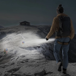 Praktična funkcija zoom omogoča gladko spreminjanje širine snopa od širokega razpršenja do ozkega, daljnega žarka. Z dosegom do 240 m boste zanesljivo videli pot in ovire. Odstranljiv kavelj olajša obešanje svetilke v šotoru, delavnici ali na nahrbtnik, zato bodo vaše roke proste.