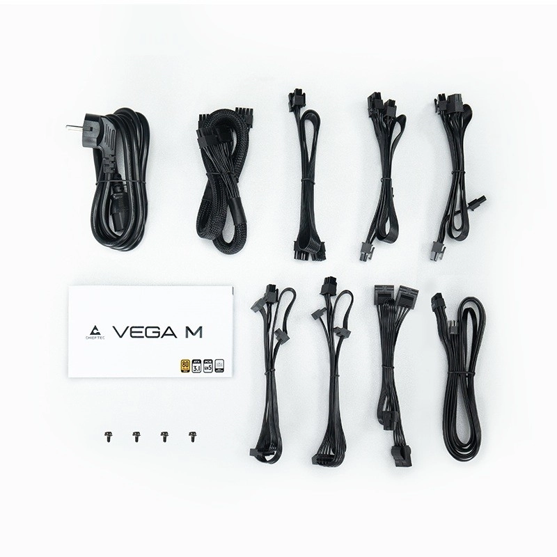 Zmogljiv napajalnik CHIEFTEC Vega M 1000W s certifikatom 80 Plus Gold izpolnjuje standard Intel ATX 12V 3.1 in podpira PCIe Gen5. Ponuja popolnoma modularno ožičenje z izjemno dolgimi črnimi kabli, stabilno napajanje zahvaljujoč topologiji LLC Half-Bridge + DC-to-DC ter tih način delovanja s 135-mm FDB ventilatorjem. Odlična izbira za zahtevne igralce in graditelje PC-jev.