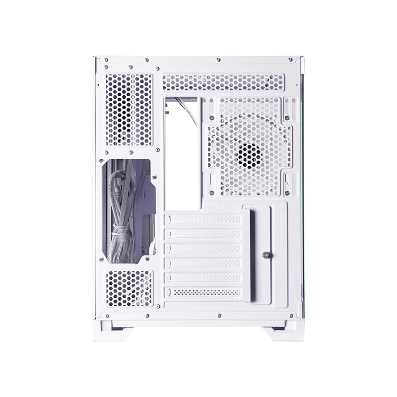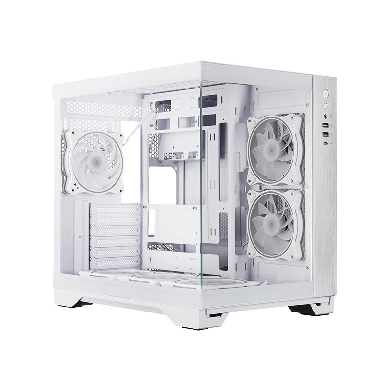 Elegantno PC ohišje CHIEFTEC Visio v beli barvi ponuja obojestransko kaljeno steklo, dvodelno zasnovo in polno združljivost z osnovnimi ploščami z zadnjimi konektorji (ASUS BTF, MSI Project Zero). Iz tovarne je opremljeno s 6× 120 mm ARGB ventilatorji in priloženo krmilno enoto za sinhronizacijo ARGB in uravnavanje hitrosti prek osnovne plošče. Podpira radiatorje do 360 mm, grafične kartice do 410 mm in hladilnike CPU do 175 mm.
