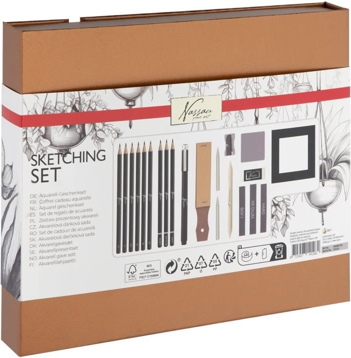 Skicarski set NASSAU 22 kos je celovita likovna rešitev za domače ustvarjanje, pouk in ateljejsko delo. Ponuja široko paleto trdot grafitnih svinčnikov ter izbor ogljikov za plastično senčenje, nežne prehode in natančno linijo. Set podpira razvoj ustvarjalnosti, fine motorike in risarskih tehnik.