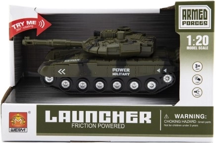 Ta podrobno izdelan tank v merilu 1:20 otrokom prinaša avtentično igralno izkušnjo. Mehanizem na vztrajnik zagotavlja gladko premikanje, medtem ko svetlobni in zvočni efekti okrepijo vzdušje vsake misije. Odlično darilo za otroke, ki imajo radi vojake in akcijske dogodivščine.