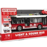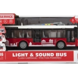 Odkrijte odličen mestni avtobus iz serije City Service, ki navduši z realistično izdelavo, rdečim dizajnom in enostavnim upravljanjem. Zahvaljujoč vztrajniku je dovolj, da avtobus potisnete in zapelje naprej, medtem ko luči in zvoki igri dodajo pristno vzdušje mestnega prometa.