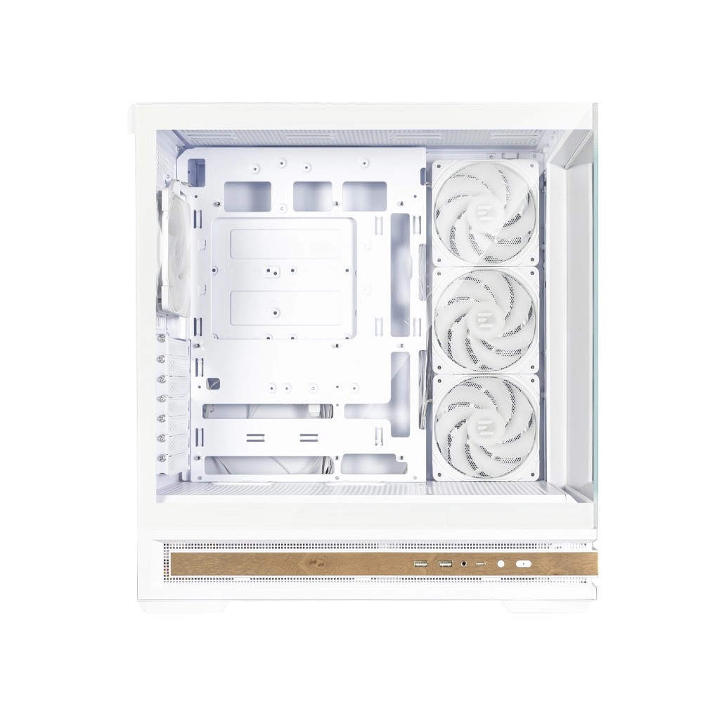 Elegantno belo PC ohišje P40 NAMU s panoramskim pogledom zahvaljujoč dvema brezokvirnima paneloma iz kaljenega stekla ponuja vrhunsko izdelavo, ARGB osvetlitev in največji pretok zraka. Z dobro zasnovanim prostorom za kable in magnetnimi filtri za prah zagotavlja čist videz, enostavno vzdrževanje ter odlično hlajenje za zmogljive sisteme.