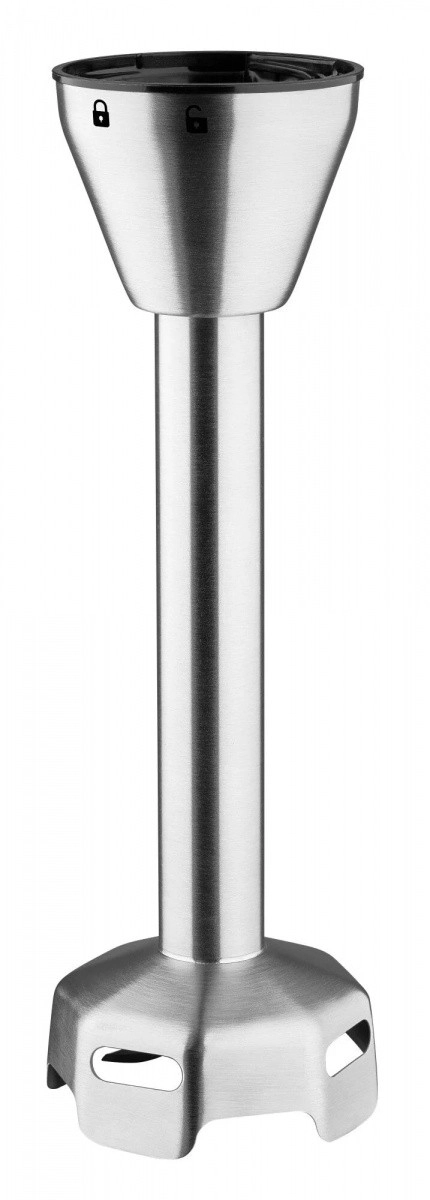 Kovinska noga z zaščitnim zvonom zmanjšuje škropljenje in je idealna za mešanje neposredno v posodi ali loncu.