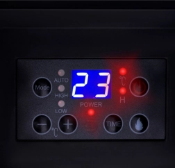 Grelnik ponuja 3 načine (visok/nizek/auto), uravnavanje temperature 26–38 °C, LCD zaslon in časovnik v korakih po 1 h (1–8 h). Praktično daljinsko upravljanje in pregleden nadzorni panel olajšata upravljanje s kavča. Za vašo varnost skrbijo toplotna varovalka, zaščita proti pregrevanju, nagibno stikalo in zaščitna mrežica. Stabilne nogice in vgrajen ročaj omogočajo enostavno prenašanje.