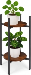 Dve okrogli polici omogočata razstavitev več rastlin ena nad drugo in ustvarita učinkovito vertikalno kompozicijo, idealno za manjše prostore.