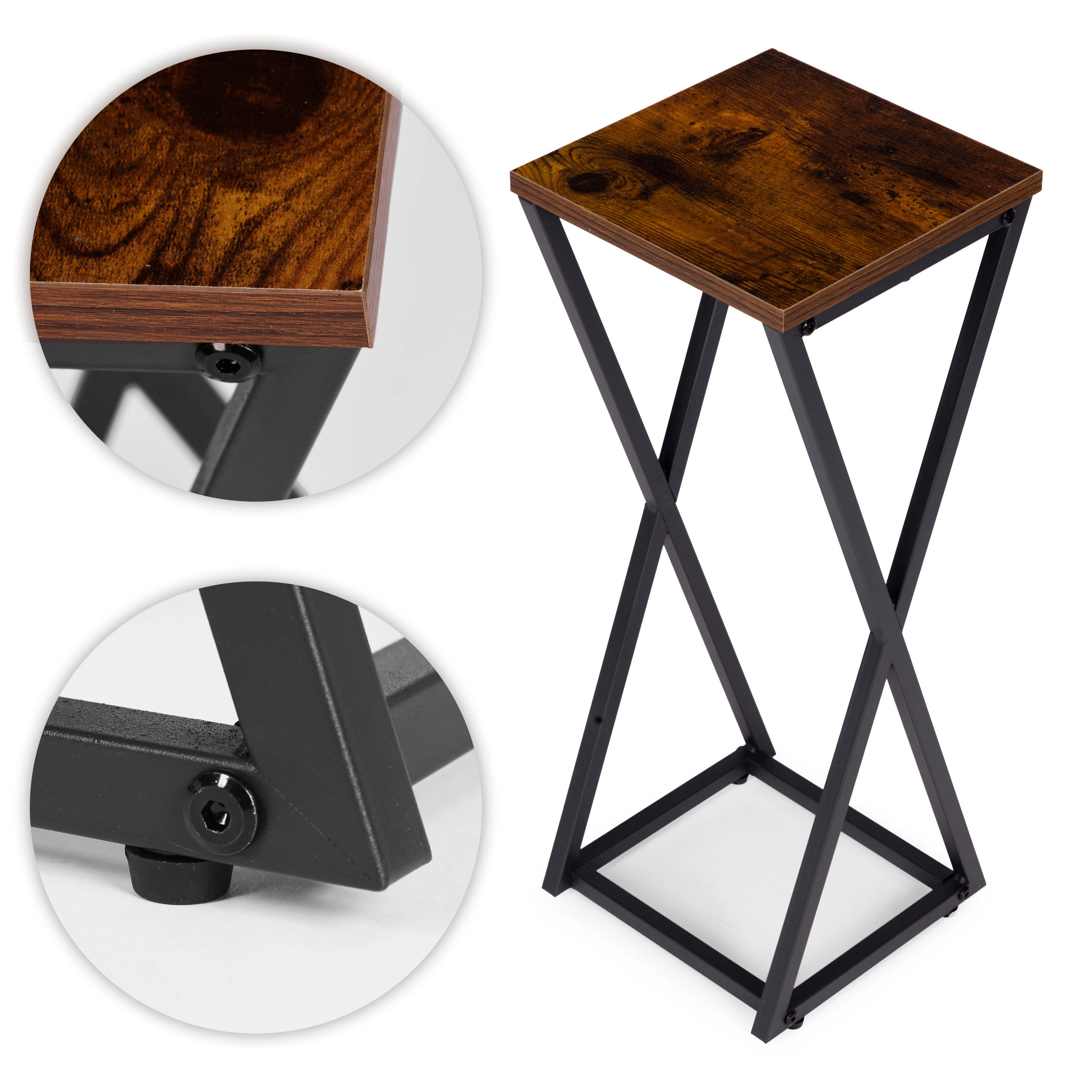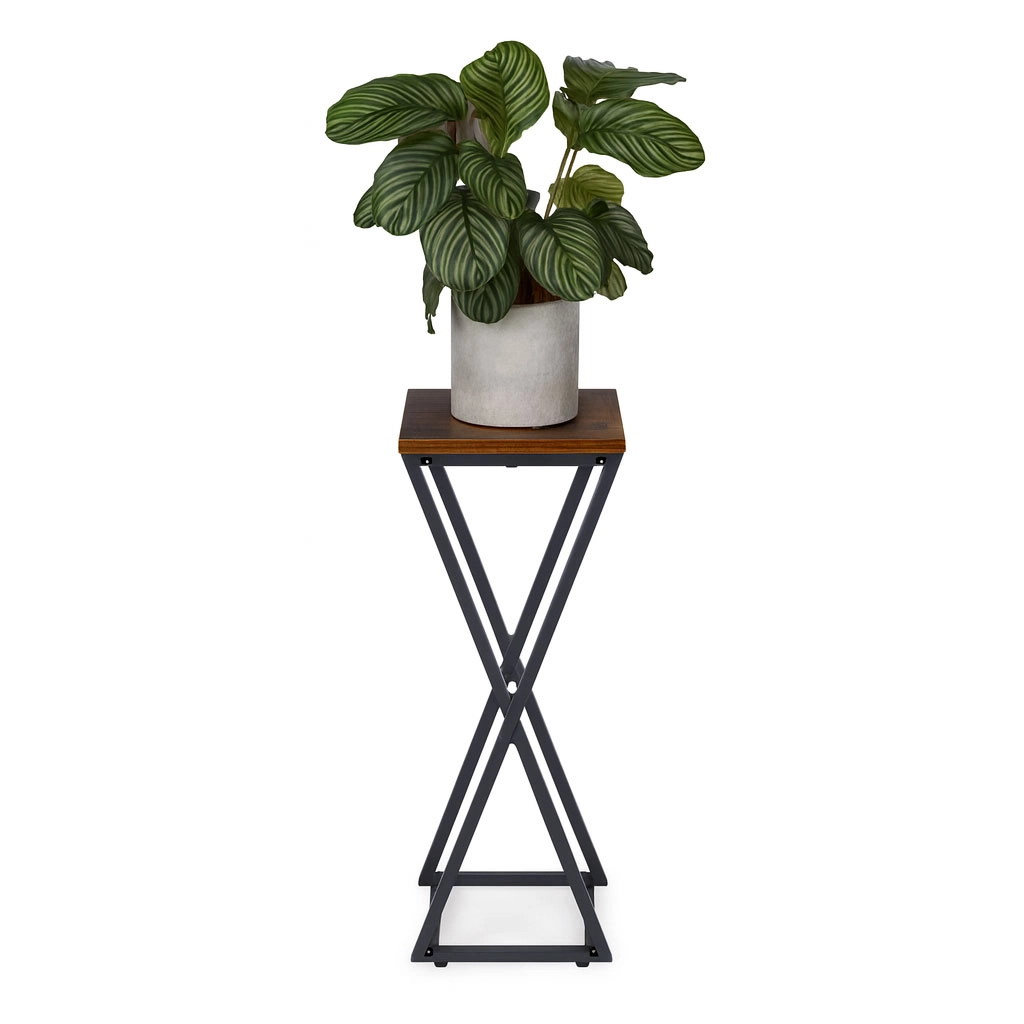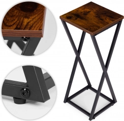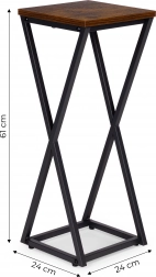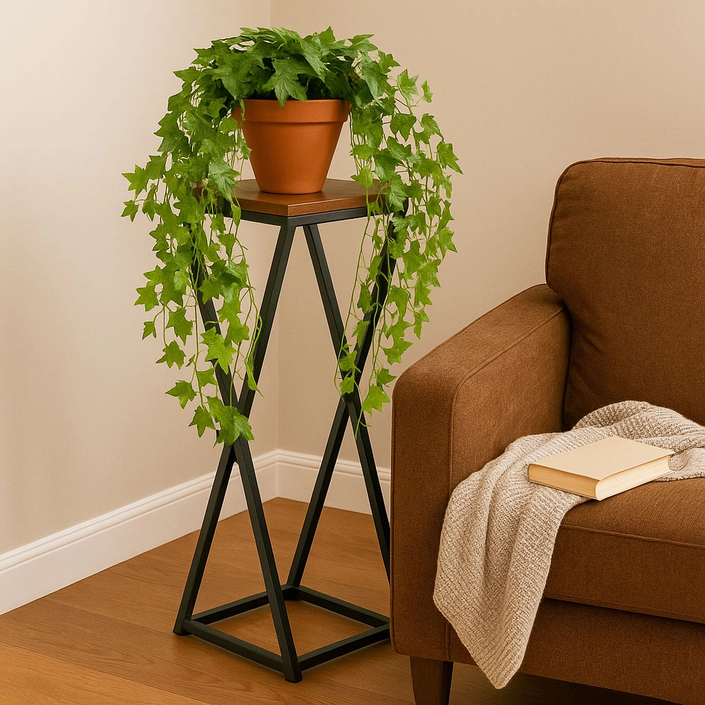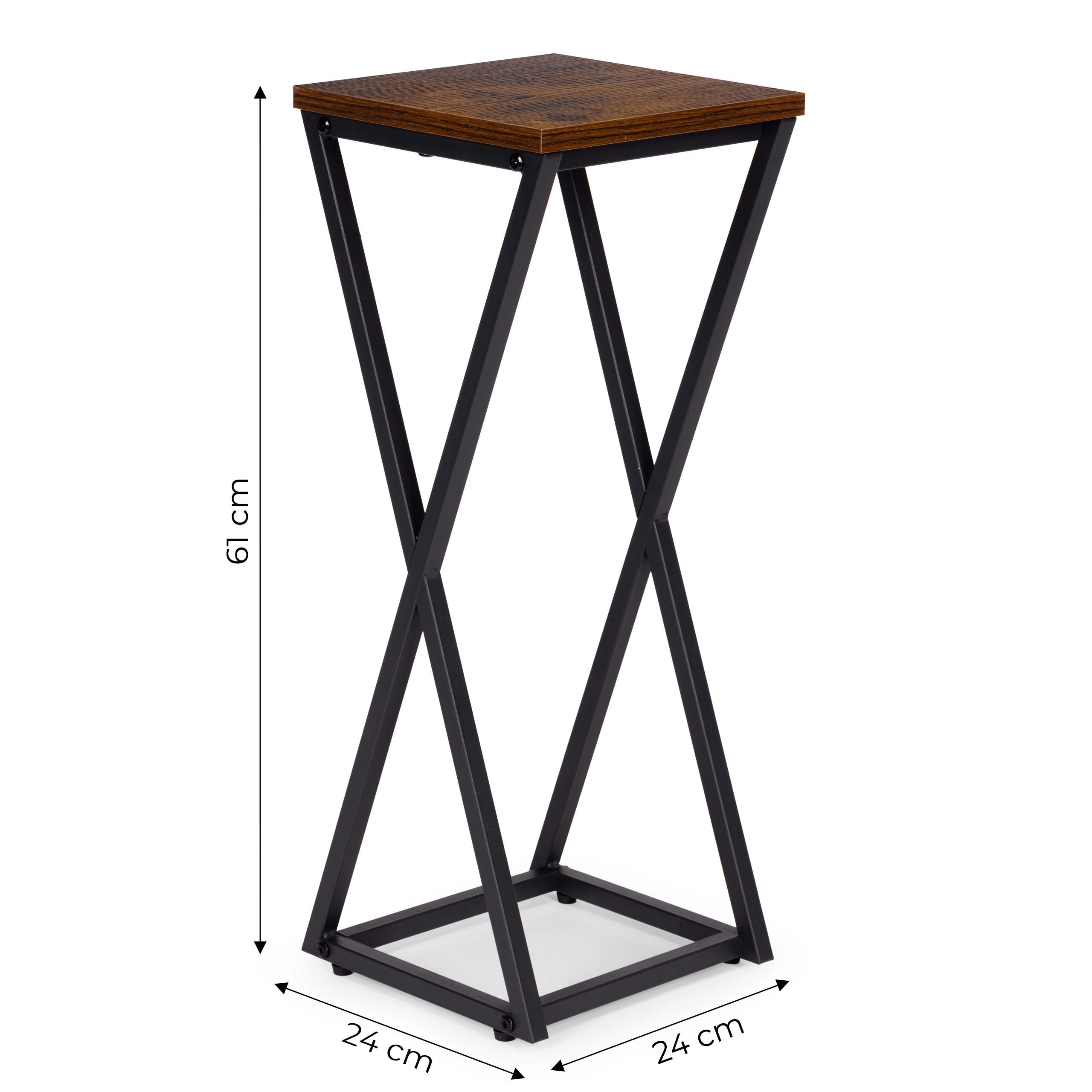 Svoje najljubše rastline razstavite stilsko in prostorsko varčno. To visoko stojalo z geometrijskim kovinskim okvirjem in kvadratno ploščo v dekorju lesa elegantno povzdigne lončnice, vaze ali dekoracije. Minimalističen industrijski dizajn se zlahka kombinira z modernimi interierji ter jim doda zračnost in vizualni red.