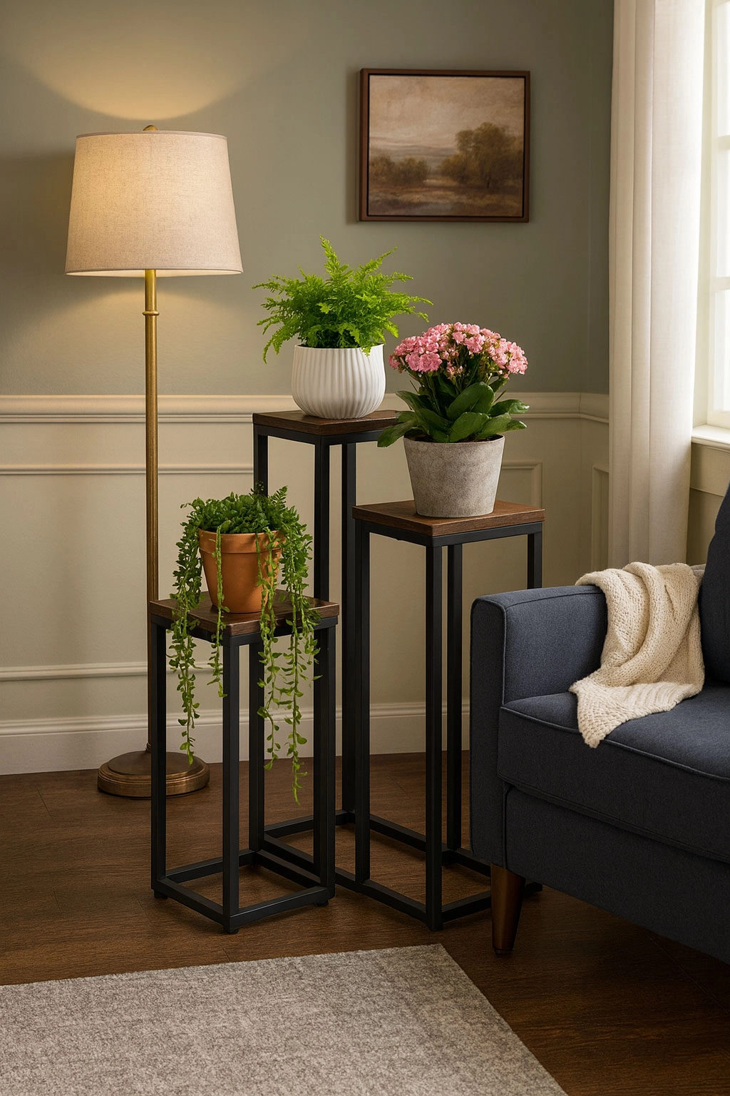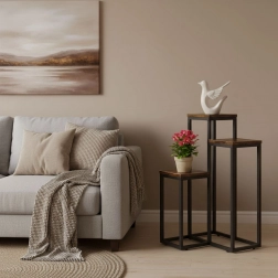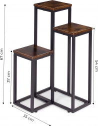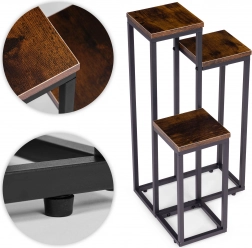 Svoje najljubše sobne rastline razstavite stilsko in pregledno. Loft stojalo za rože združuje industrijski videz s praktično rešitvijo za vsakodnevno uporabo – tri višinsko razporejene police olajšajo nego rastlin, izboljšajo dostop do svetlobe in polepšajo interier. Zahvaljujoč univerzalnim meram je primerno za dnevno sobo, delovno sobo, hodnik ali kuhinjo za zelišča.