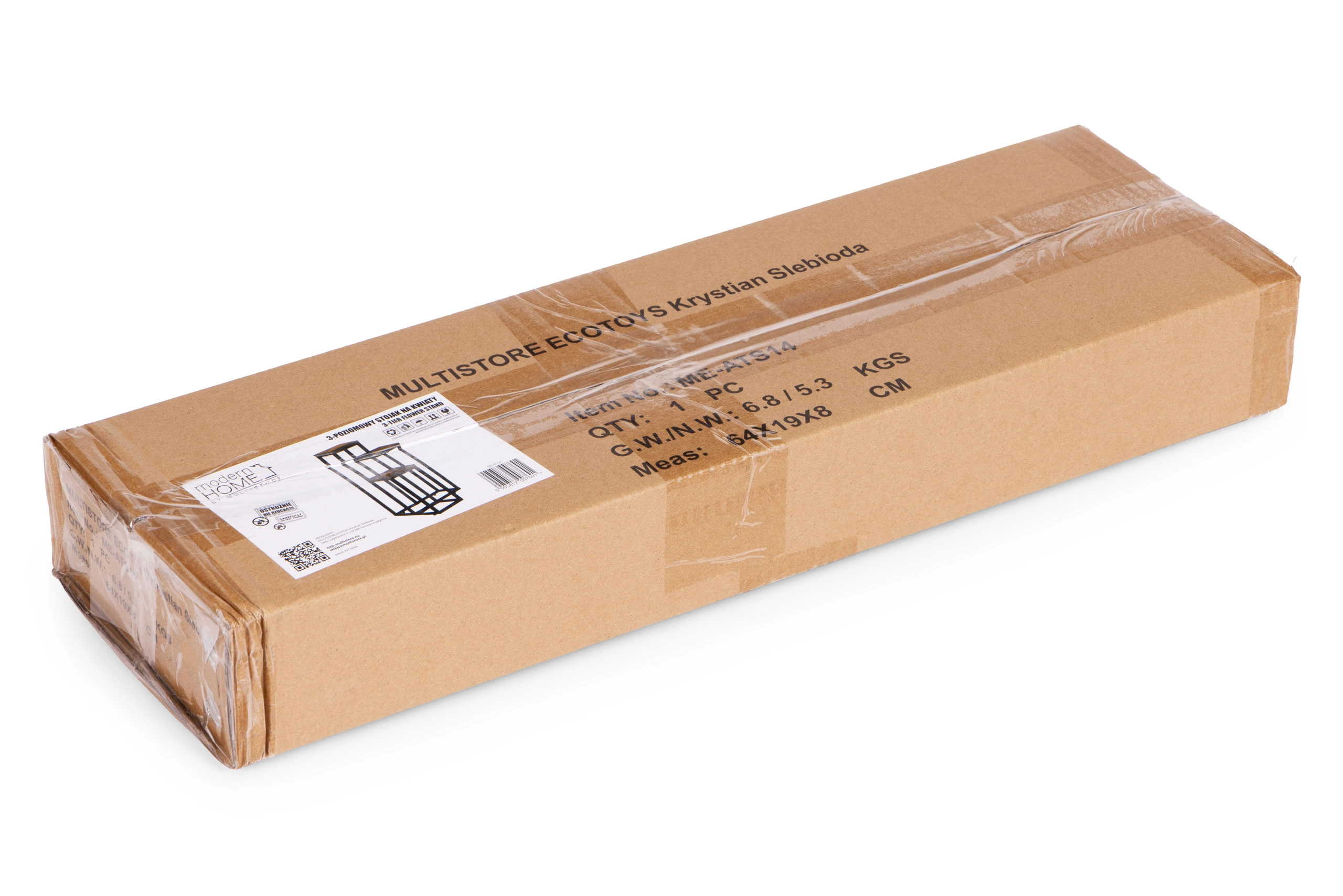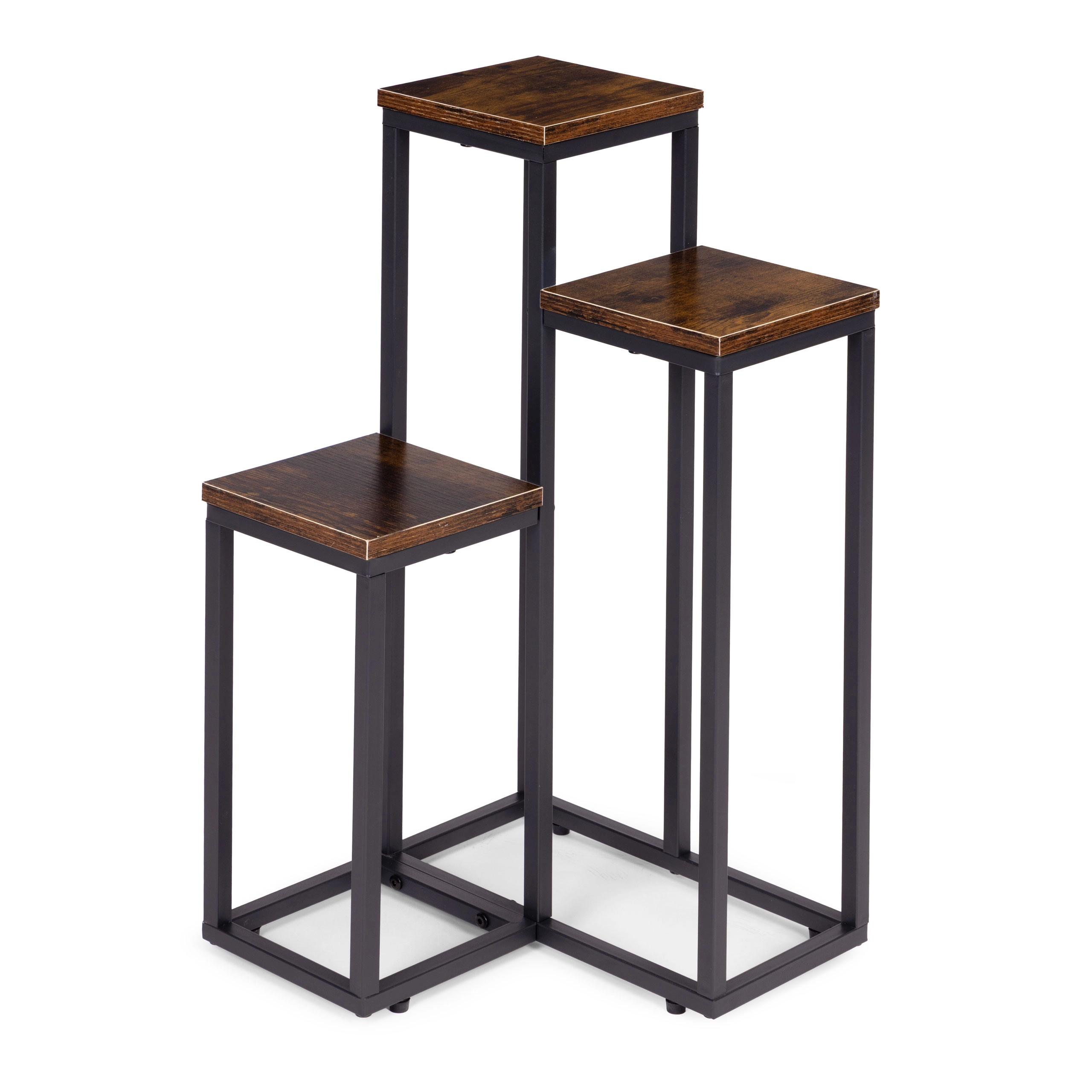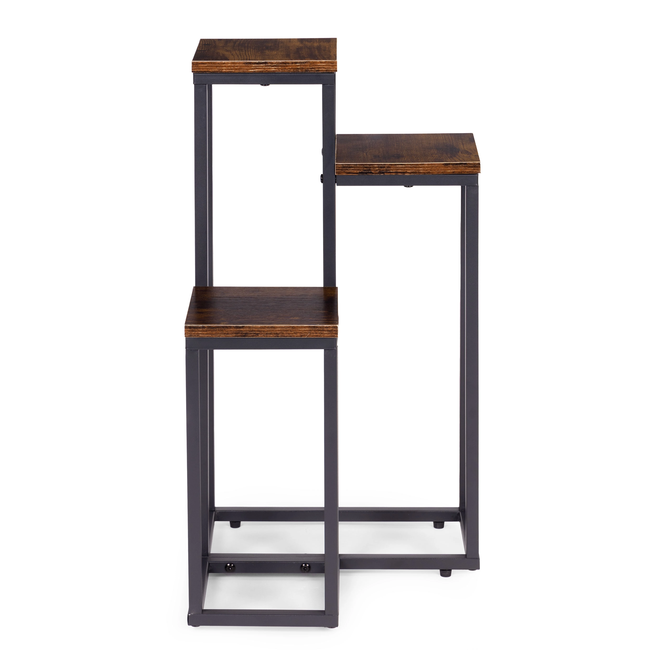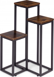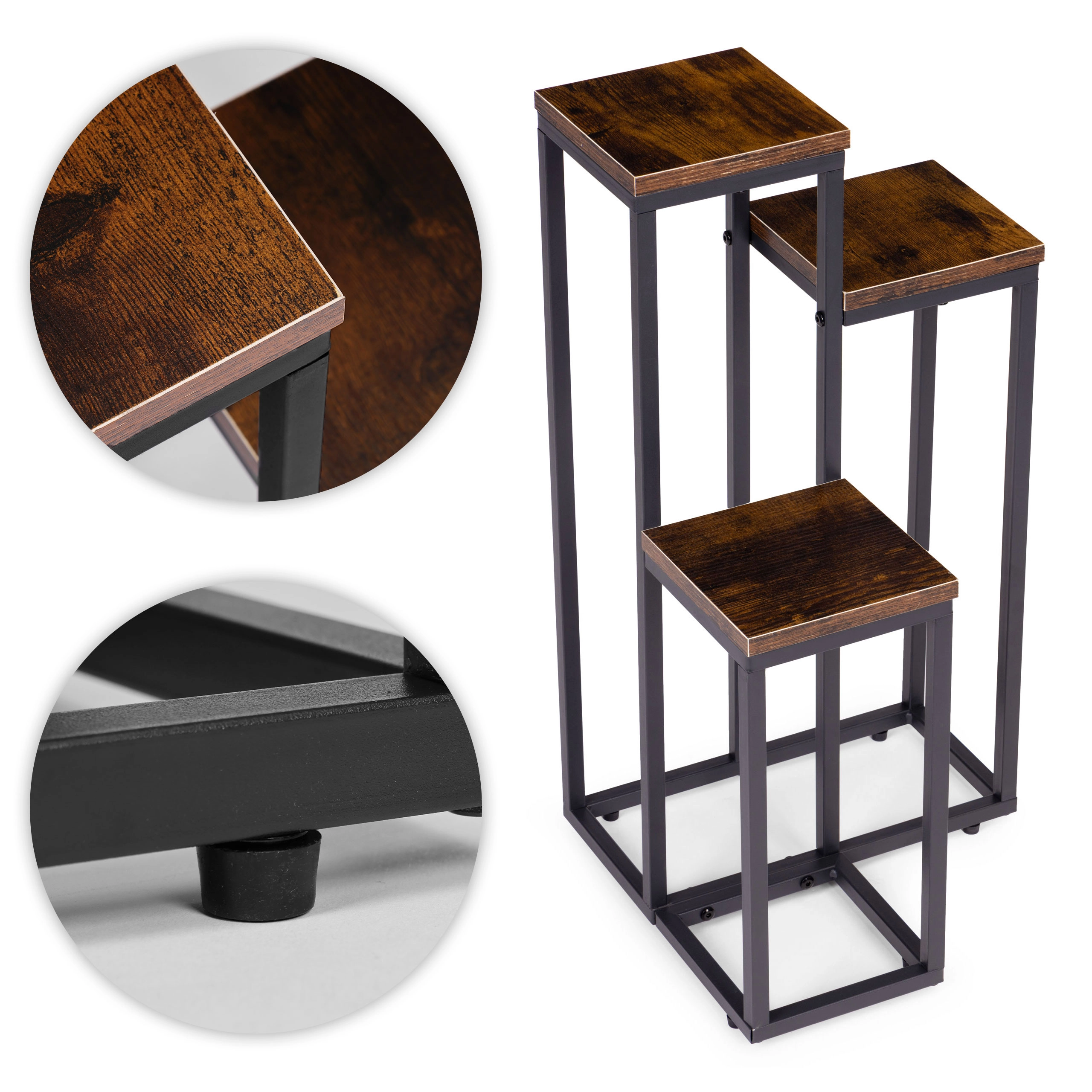 Okvir iz prašno lakiranega jekla je odporen proti koroziji in mehanski obrabi, medtem ko plošče v videzu naravnega lesa poudarijo sodoben loft značaj. Nedrseče nogice povečajo stabilnost in ščitijo tla pred praskami. Največja nosilnost 5 kg je idealna za večino lončnic in dekoracij.
