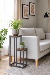 Svoje najljubše rože, zelišča ali dekoracije razstavite urejeno in s stilom. Stojalo za rože v loft dizajnu združuje moderen videz z vzdržljivo izdelavo, zato je primerno za vsak interier – od dnevne sobe do kuhinje in delovnega prostora. Dve različni višini polic omogočata učinkovite aranžmaje visečih in pokončnih rastlin.