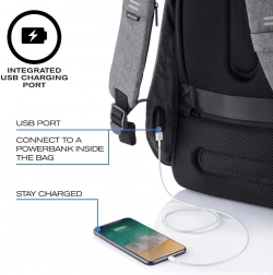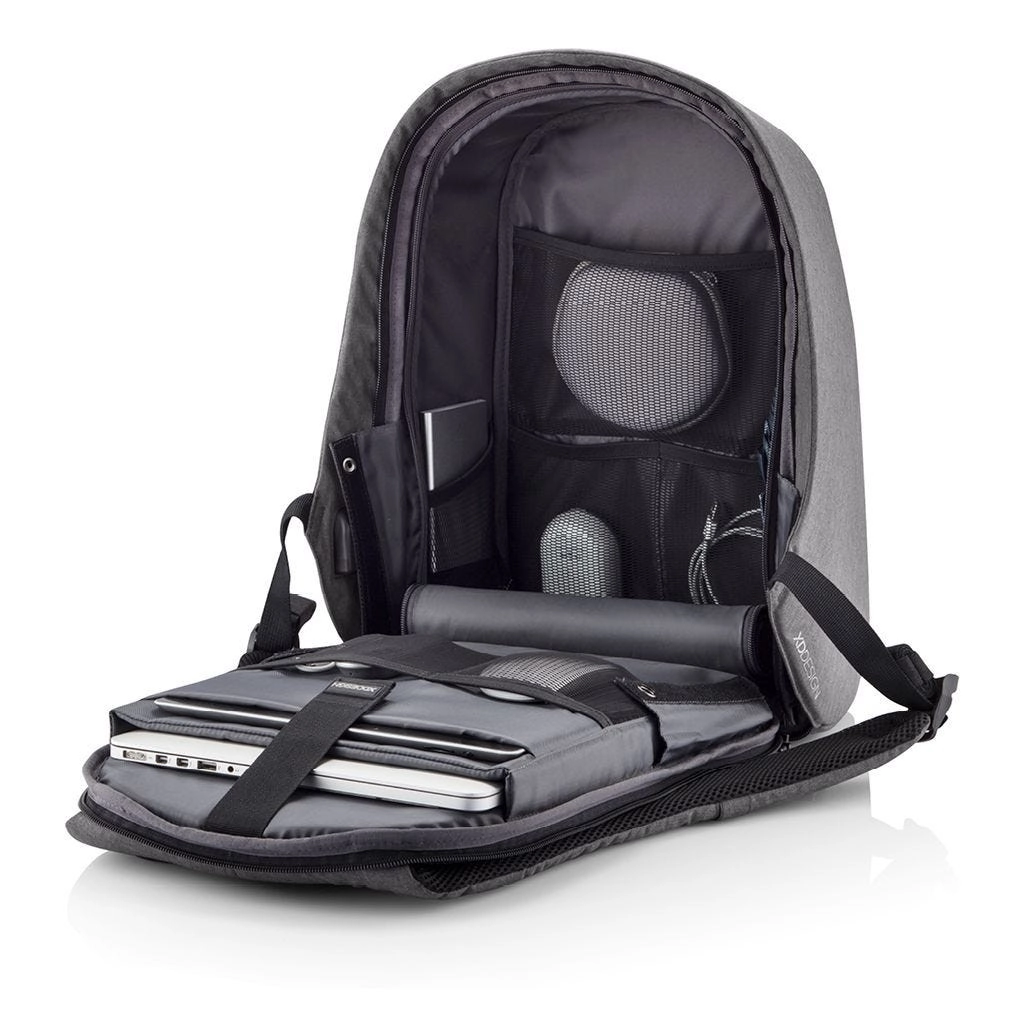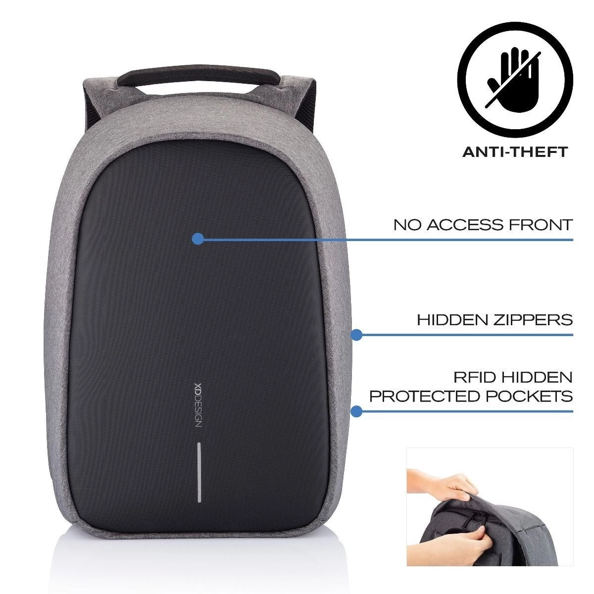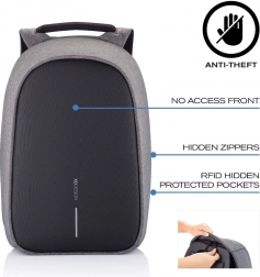BOBBY Hero Small je sodoben mestni nahrbtnik, zasnovan za maksimalno varnost in udobje. Glavni predal se odpira izključno s hrbtne strani, skrite zadrge in žepi z RFID zaščito varujejo vaše dragocenosti, medtem ko konstrukcija, odporna proti prerezu, in vodoodporni RPET materiali zanesljivo kljubujejo pastem vsakodnevnega prevoza in potovanj.