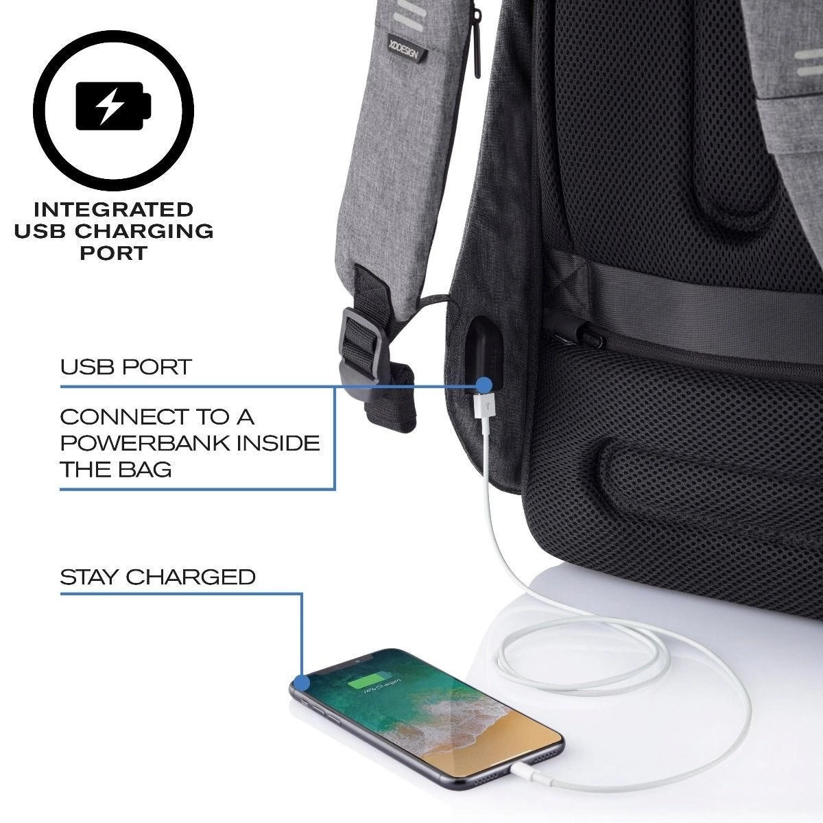 Slogovit in kompakten nahrbtnik za mesto in potovanja s poudarkom na protikradni zasnovi, skritih zadrgah in žepih z RFID, odpornosti proti prerezu ter vodoodpornem materialu. Ponuja oblazinjene predale za 13,3" prenosnik in 12,9" tablico, premišljen organizator, integriran USB priključek in odsevne elemente za varno in udobno gibanje vsak dan.