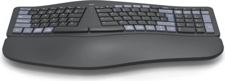 Olajšajte ramena, vrat in zapestja z ergonomsko obliko z razdeljenim blokom tipk, negativnim naklonom in mehko oblazinjeno oporo. Tipkovnica podpira naraven položaj rok, kar zmanjšuje napetost mišic in kit ter povečuje udobje tudi pri dolgem tipkanju.