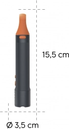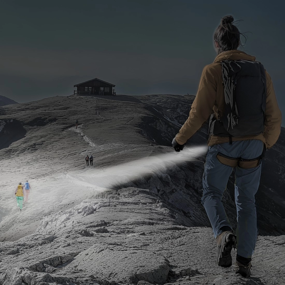 Natančen zoom omogoča gladko spreminjanje širine snopa – od širokega za delo na blizu do ozkega, osredinjenega žarka za pregled na večjo razdaljo. Gumb SOS pošlje izrazit svetlobni signal v sili, medtem ko odstranljiv kavelj osvobodi roke pri delu, kuhanju ali popravilih v kampu.