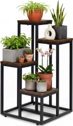 Ustvarite domačo džunglo z minimalističnim pridihom. To loft stojalo za rože združuje trden jeklen okvir s policami iz iverne plošče v lesnem dekorju, zato se odlično poda tako v moderne kot industrijske interierje. Večnivojska razporeditev izboljša dostop do svetlobe in omogoča privlačno kompozicijo zelišč, sočnic in visečih rastlin.