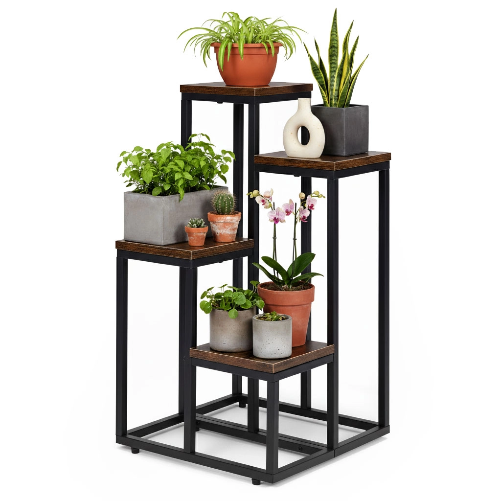 Štiri police na različnih višinah omogočajo pametno razstavitev različnih vrst rastlin in jim zagotavljajo boljši dostop do svetlobe, ne da bi zasedle veliko talne površine.