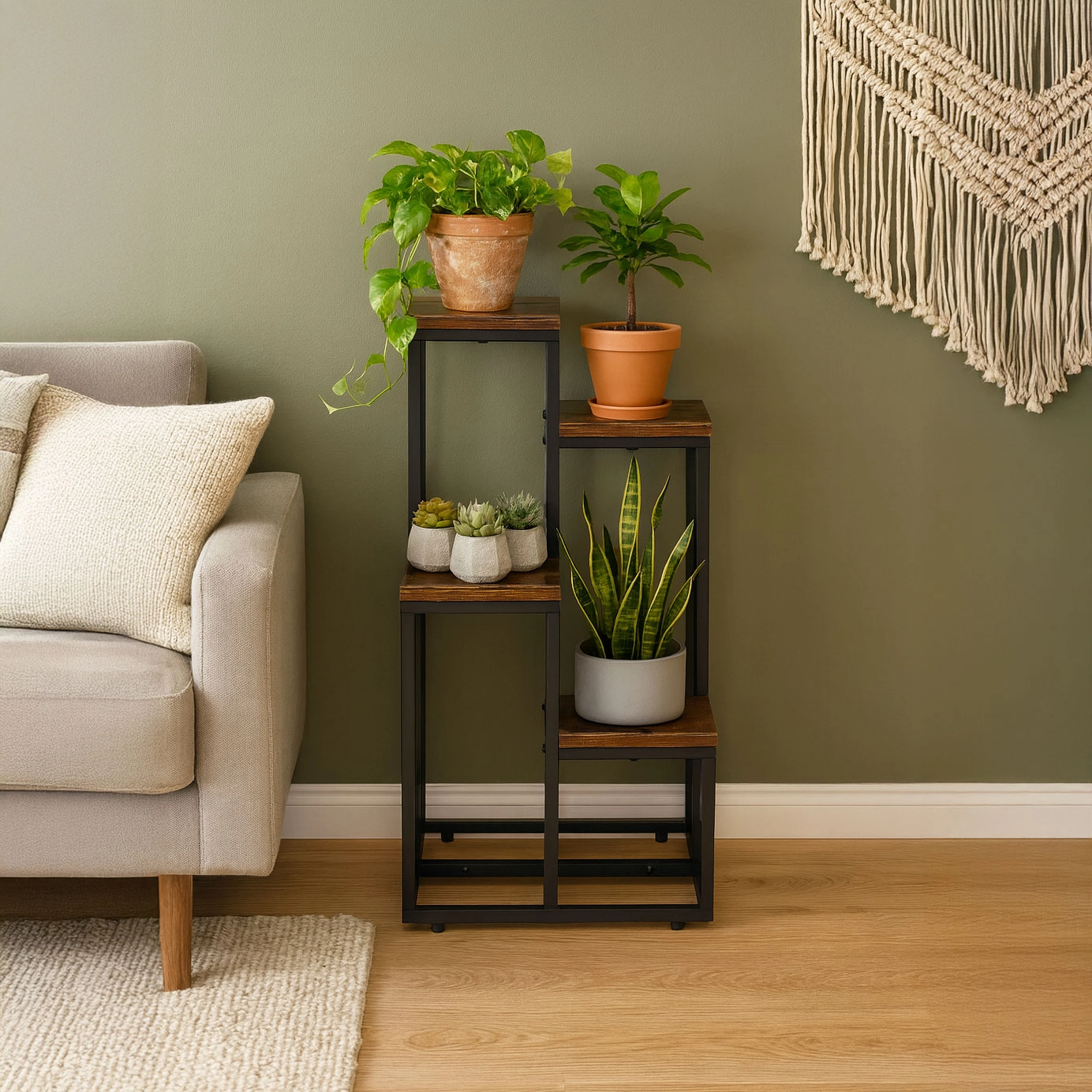 Zaradi kompaktnih dimenzij boste izkoristili prostor ob oknu, v predsobi ali v pisarni. Proti zdrsu nogice ščitijo tla in povečujejo stabilnost, medtem ko prašno lakiranje zagotavlja odpornost proti koroziji in vsakodnevni obrabi. Idealna izbira, če želite dodati več zelenja in elegance brez po nepotrebnem zasedenega prostora.