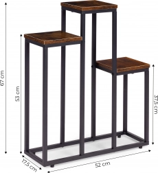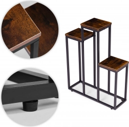 Vnesite v notranjost več zelenja in stila. Stojalo za rože v loft dizajnu združuje prašno barvano jeklo s policami v lesnem dekorju, zato se odlično poda k modernim in industrijskim prostorom. Zahvaljujoč različnim višinam polic zlahka razstavite zelišča v kuhinji, praproti v hodniku in viseče rastline na nižji ravni.