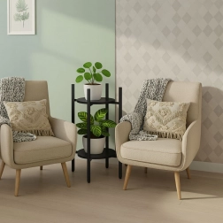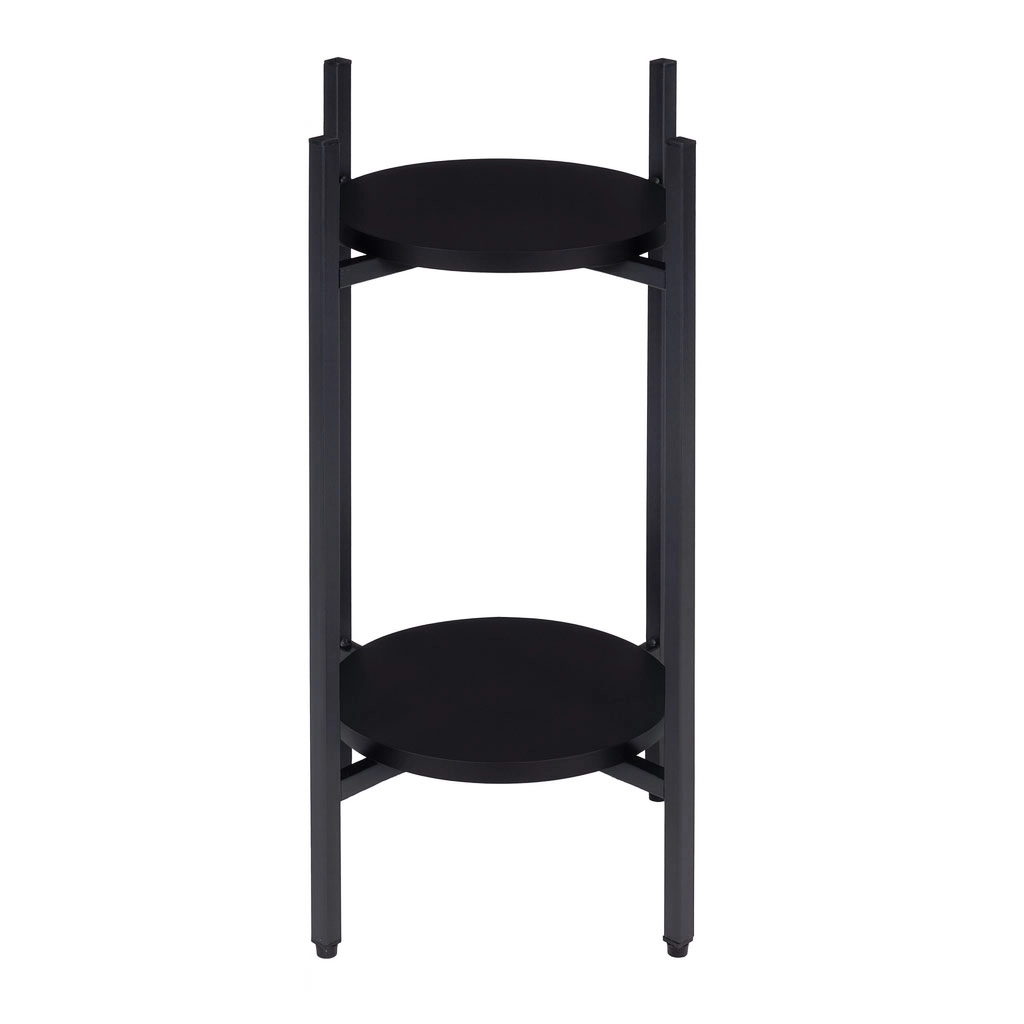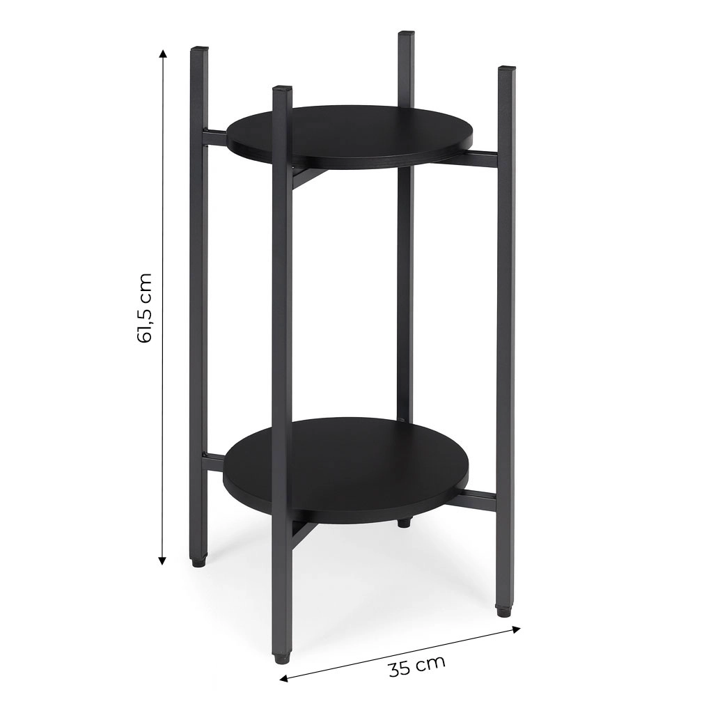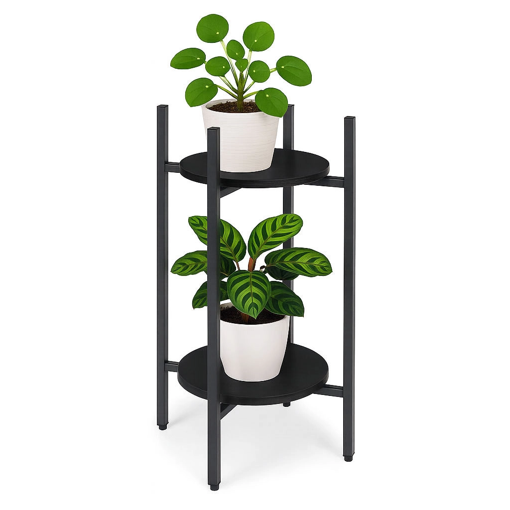 Odkrijte pametno rešitev za vaše zelene dekoracije. Dvonivojsko stojalo za rože MODERNHOME združuje čist moderen videz s praktično izrabo prostora. Okrogle kovinske police elegantno poudarijo zelišča v kuhinji, praproti v hodniku in dekorativne rastline v dnevni sobi ter pomagajo ohranjati interier urejen in zračen.
