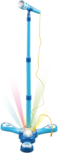 Ta otroški karaoke komplet ponuja vse, kar mali pevci potrebujejo: stabilno stojalo s tripodom, odstranljiv mikrofon in pisane svetlobne učinke, ki pričarajo vzdušje pravega odra. Z 12 vgrajenimi melodijami lahko otroci takoj začnejo peti ali pa si s priloženim kablom predvajajo svoje najljubše skladbe s telefona ali MP3.