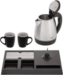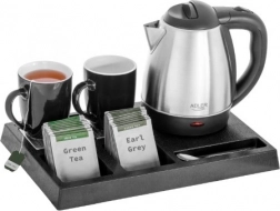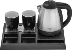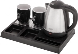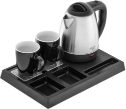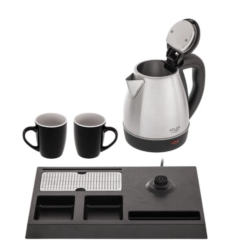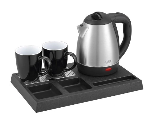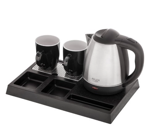 Komplet ADLER AD 1354 je zasnovan za profesionalno uporabo v nastanitvenih objektih. Združuje estetiko in vzdržljivost: grelnik iz nerjavnega jekla zagotavlja hitro pripravo vroče vode, medtem ko je ABS pladenj s teksturiranim dekorjem vodoodporen in enostaven za čiščenje. Dve keramični skodelici brez logotipa delujeta univerzalno in elegantno.