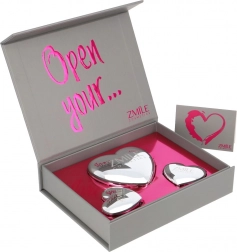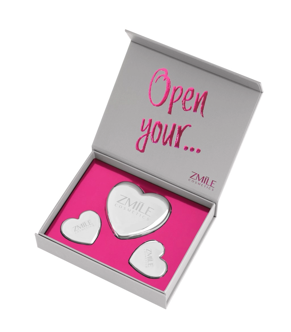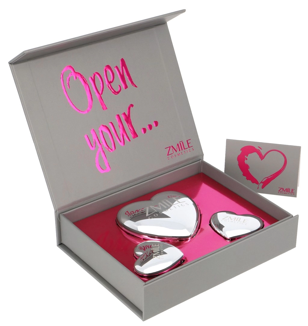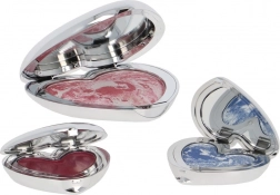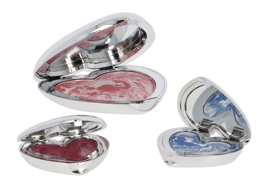 Vsak izdelek je shranjen v elegantnem kovinskem ohišju v obliki srca z vgrajenim ogledalcem za hitre popravke ličil kadarkoli in kjerkoli.