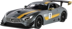 Odkrijte natančno izdelan RC model MERCEDES-AMG GT3 v sivi barvi z rumenimi črtami in izrazitim zadnjim krilom. Podrobna karoserija izstopa s športnimi linijami in avtentičnimi elementi dirkalnega vozila, ki bodo razveselili vsakega ljubitelja hitrih avtomobilov.