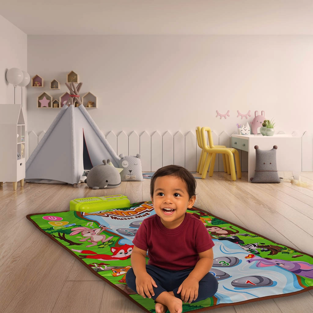 Ta barvita glasbena podloga za otroke spremeni vsak dan v veselo igro. Oštevilčena polja vodijo otroke v svet tonov C-dur, medtem ko prisrčne živalice učijo prepoznavati zvoke in barve. Mehka in lahka površina je udobna za igranje na tleh in jo je enostavno prenašati.