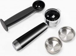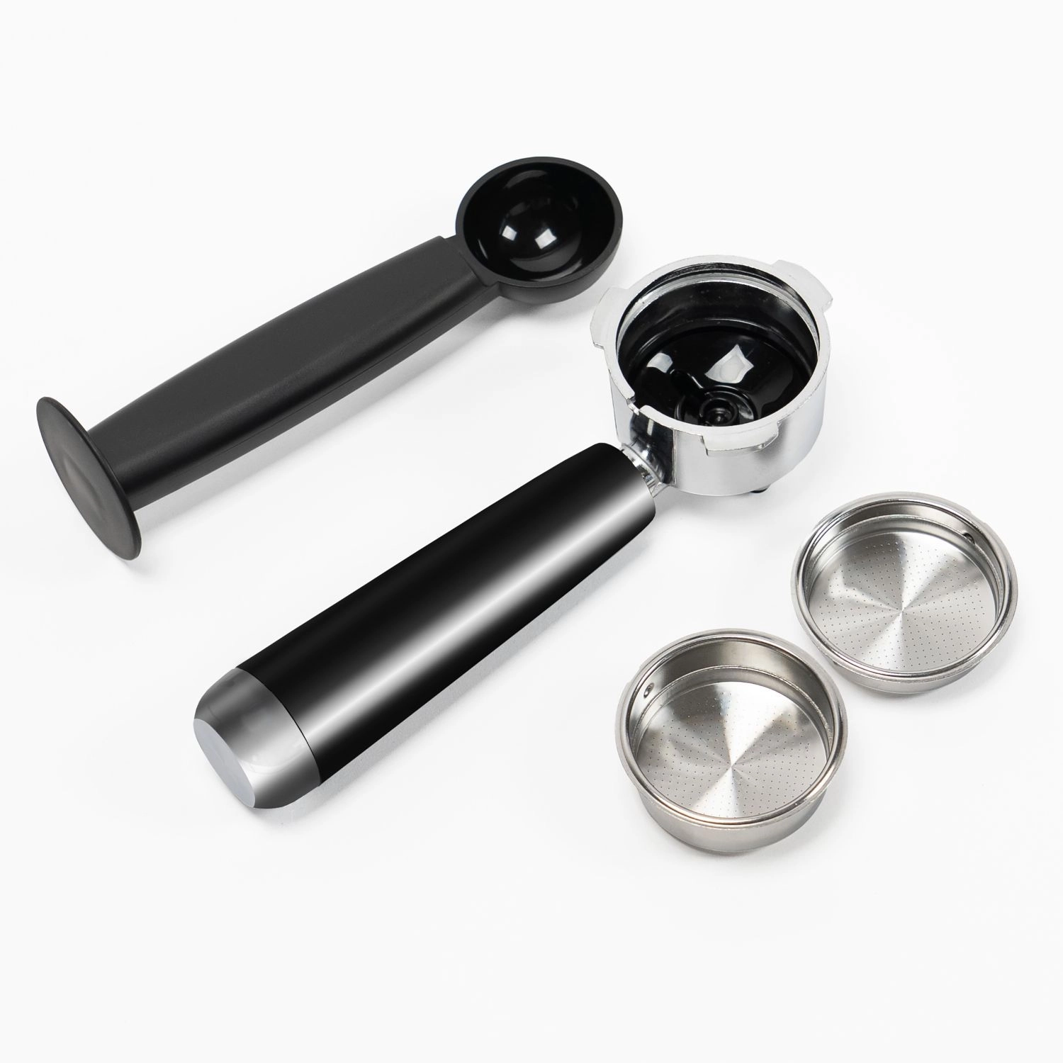Upravljanje je intuitivno prek elektronskega LED‑panela z osvetljenimi gumbi. Prilagodite si jakost in količino napitka, grelnik skodelic ohranja idealno temperaturo, indikator nivoja vode pa zagotavlja popoln nadzor. V paketu je portafilter 52 mm, dva košarica za 1–2 skodelici in tamper – vse, kar potrebujete za domače baristične začetke.