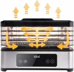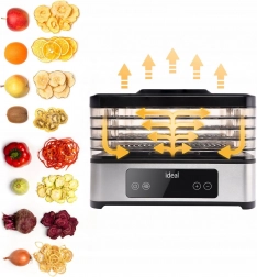 Sušilnik živil WEBBER IK3301 prinaša svobodo priprave domačih dobrot točno po vašem okusu. Zahvaljujoč natančni regulaciji temperature 35–70 °C in moči 400 W zlahka obdela nežna zelišča, sadje ter tudi bolj zahtevne sestavine, kot sta meso ali ribe. Konvekcijsko kroženje zraka suši enakomerno na vseh nadstropjih hkrati, zato ni treba pladnjev obračati.