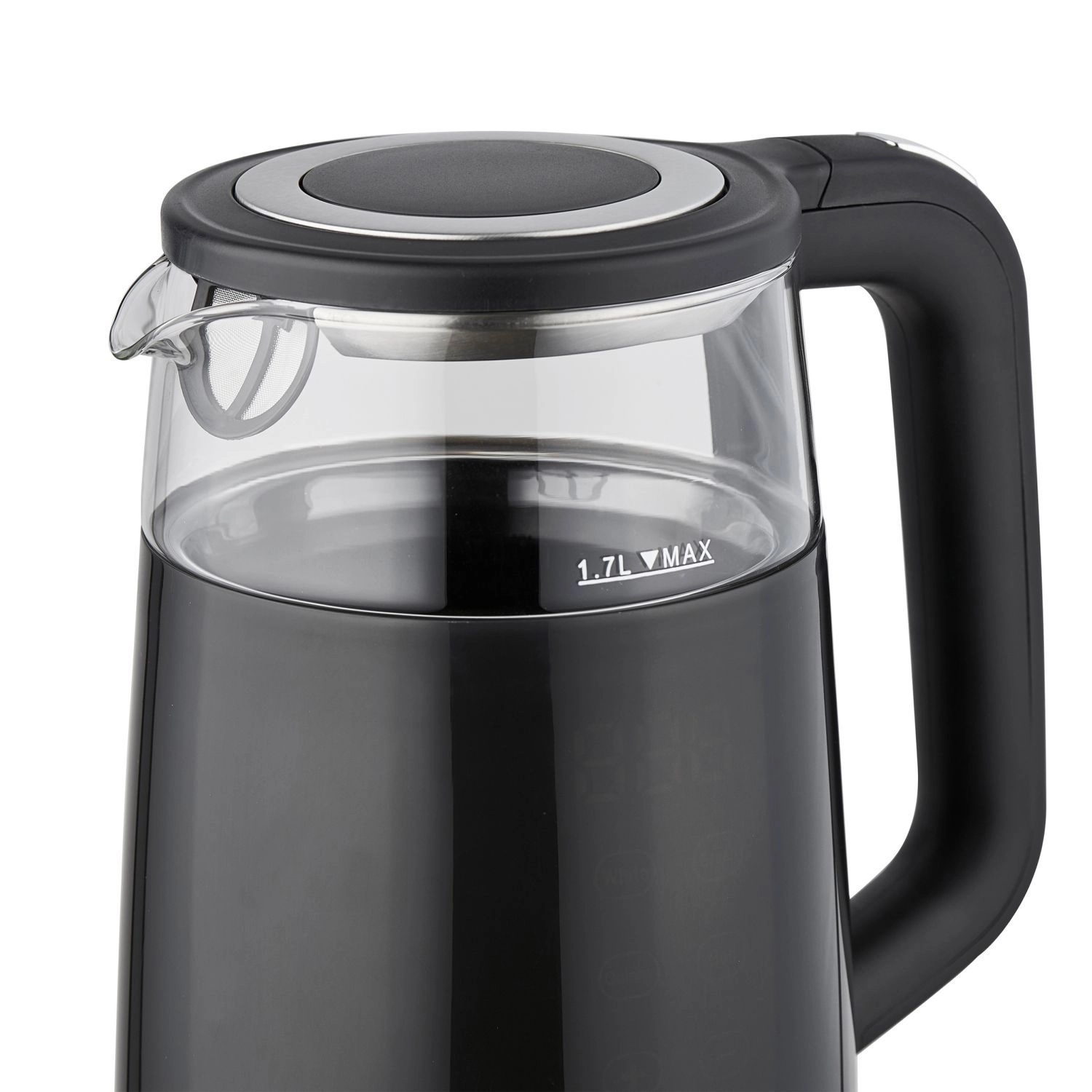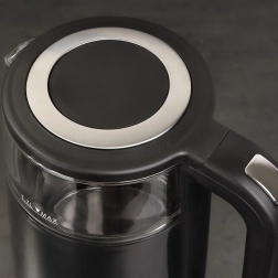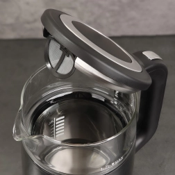 Prozorno steklo omogoča nadzor nad vodo, fin mrežasti filter ujame usedline, izolirano ohišje pa ostane na dotik hladno za večjo varnost.