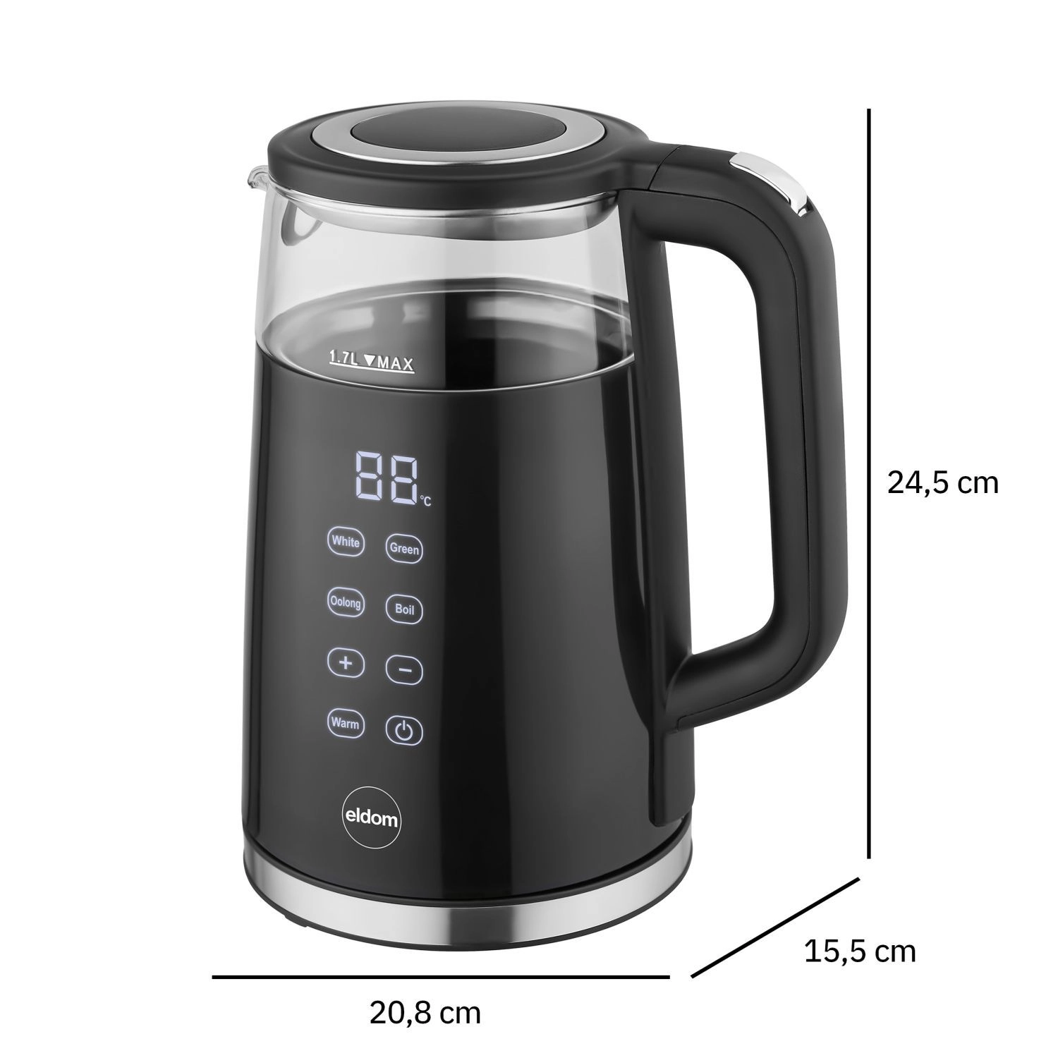 Izbirajte med 13 stopnjami v korakih po 5 °C in uporabite 4 prednastavljene načine (70/80/90/100 °C). Z enim dotikom pripravite beli, zeleni ali oolong čaj ter vrelo vodo.