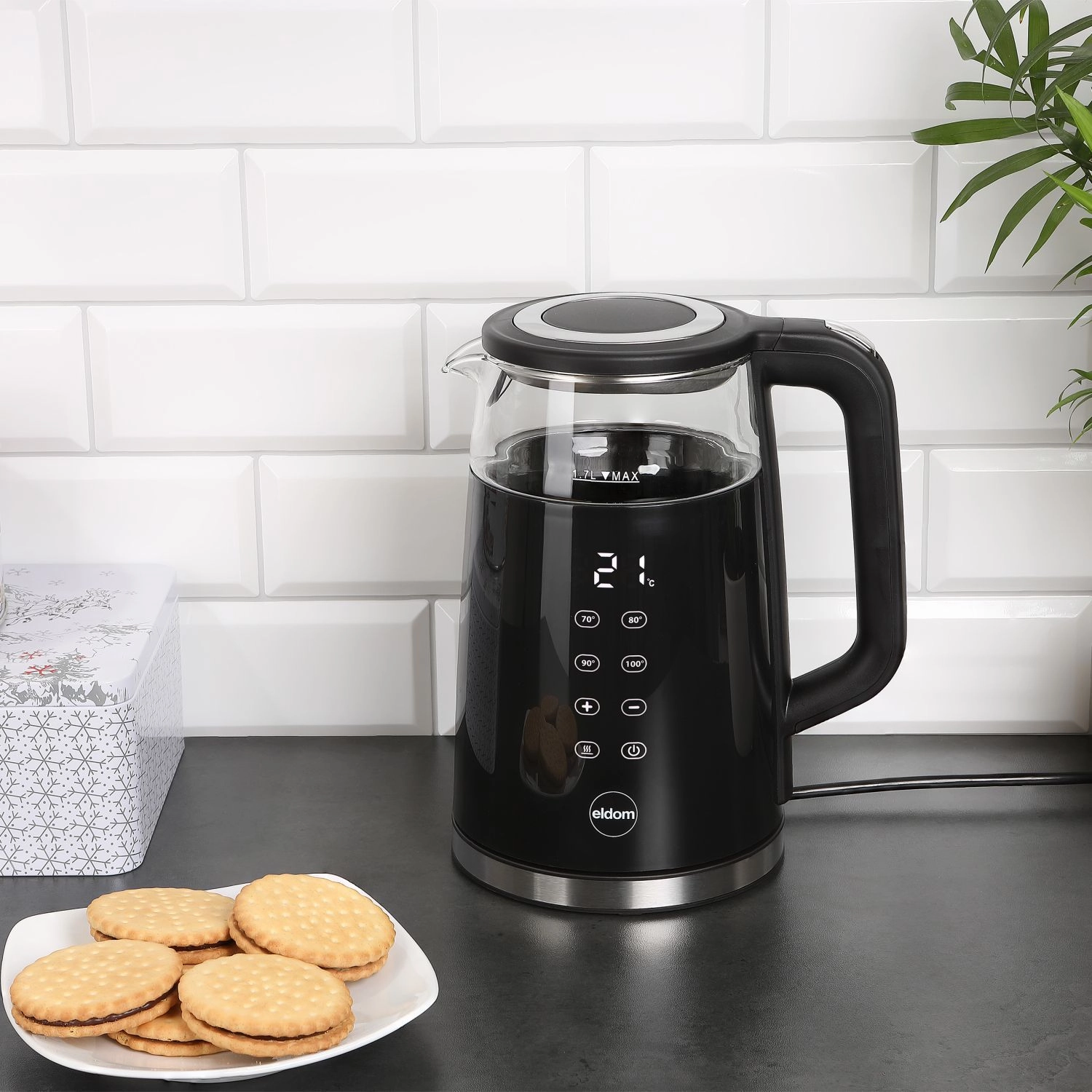 Intuitivno upravljanje na dotik z LED zaslonom nudi hiter dostop do 4 prednastavitev (70/80/90/100 °C) in do funkcije Keep Warm do 2 ur. 360° vrtljiva osnova olajša rokovanje v katerikoli smeri, samodejni izklop s trojno zaščito pa zagotavlja varno delovanje.