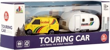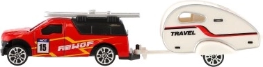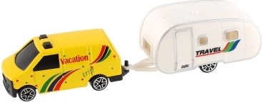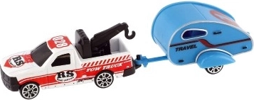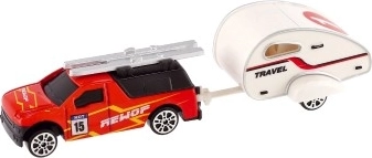 Predstavljamo igračo, ki do maksimuma prebudi otroško domišljijo. Avto z mini prikolico je izdelan iz kovine in plastike, kar zagotavlja dolgo življenjsko dobo in trpežnost. Skupna dolžina kompleta je 14 cm, zato je idealen spremljevalec za vsakodnevno igro in za na pot.