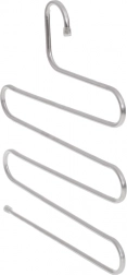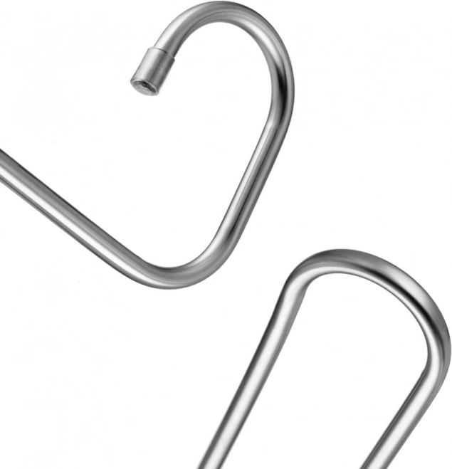 Obešalnik je izdelan iz nerjavečega jekla, ki zagotavlja visoko odpornost in dolgo življenjsko dobo. Stabilna konstrukcija se pod obremenitvijo ne deformira, zato je primeren tudi za težje tkanine. Sodobna kovinska podoba se poda vsaki garderobi ali omari.