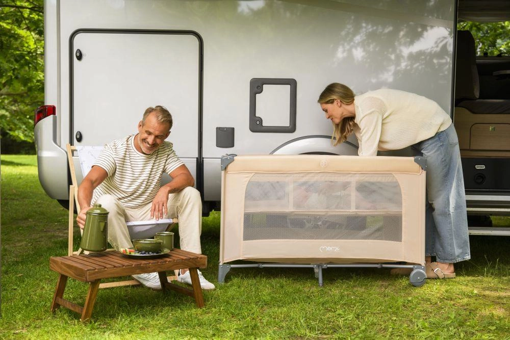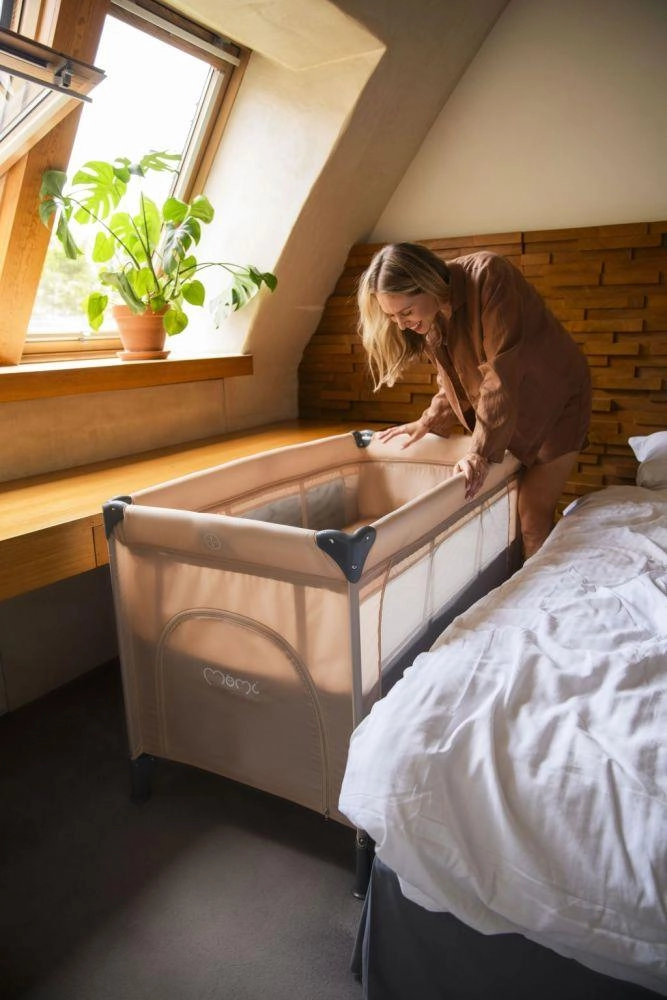 MoMi Belove Plus je zanesljiva potovalna posteljica za dojenčke od rojstva dalje, ki izstopa po enostavni uporabi in varni zasnovi. Z zahvaljujoč hitremu zložljivemu sistemu jo v trenutku pripravite za uporabo, po zlaganju pa jo shranite v priloženo torbo. Zračne mrežaste stranice zagotavljajo pretok zraka in dober pogled na otroka.