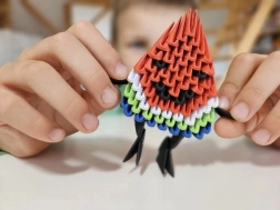 Po končanem delu dobite pisano 3D figurico v slogu lubenice, ki bo krasila otroško sobo ali pisalno mizo.