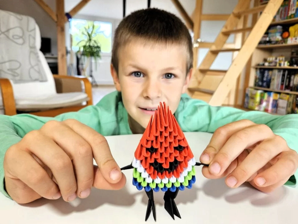 Ta igrivi komplet ORIGAMI 3D z motivom lubenice je idealna izbira za prve korake v svet modularnega origamija. Posebna oblika delčkov z jasno označeno linijo pregiba omogoča gladko in samozavestno zlaganje. V nekaj preprostih korakih nastane pisana 3D figurica, ki razveseli kot dekoracija in kot rezultat ustvarjalne dejavnosti.