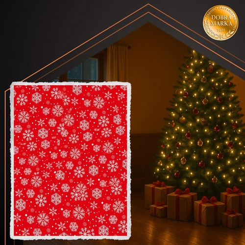 Rdeče-bela dekoracija se lepo ujema s prazničnim okrasjem, odpornosti proti mečkanju in muckanju pa poskrbita, da plaid dolgo ohrani eleganten videz. Priložen je darinčni satenasti trak – pripravljen, da razveseli kot darilo.