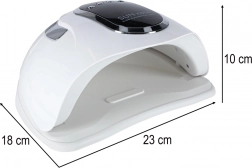 Praktična nadzorna plošča ponuja prednastavljene čase 10 s, 30 s, 60 s in 99 s (low heat), ki zmanjšujejo toplotni šok pri občutljivih nohtih. Vgrajeni senzor gibanja samodejno zažene svetilko po vstavitvi roke ali noge, kar pospeši delo tako v salonu kot doma.