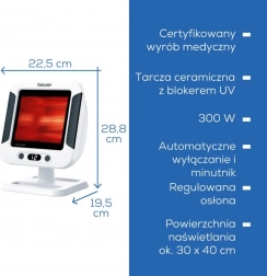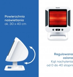 Infrardeča svetilka BEURER IL 60 nudi pomirjujočo globinsko toploto, ki podpira metabolizem in lahko pospeši okrevanje pri prehladu ter lajša napetost in bolečine v mišicah. Zaradi moči 300 W zadostujejo kratke seanse, ki jih zlahka prilagodite.