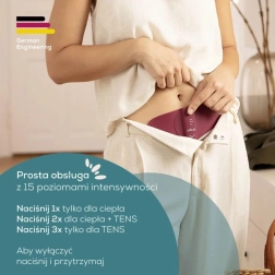 Preživite dneve menstruacije udobneje s kombinacijo tehnologije TENS in nežnega gretja, ki skupaj zmanjšujeta zaznavanje bolečine v spodnjem delu trebuha. Naprava stimulira živčna vlakna preko kože, spodbuja sproščanje endorfinov in prinaša učinkovito in naravno olajšanje brez medikacije.