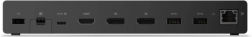 USB‑A in USB‑C za periferijo in polnjenje, več DisplayPort/HDMI za zunanje zaslone, gigabitni Ethernet in vhod za napajanje – vse v enem kompaktnem ohišju.
