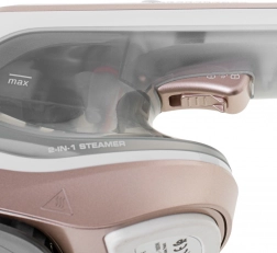 Keramična likalna plošča zlahka drsi, izostrena konica pa olajša likanje okoli gumbov in šivov. Zahvaljujoč neprekinjeni pari in možnosti navpičnega parjenja hitro osvežite oblačila na obešalniku in notranje tekstilije. LED-zaslon poenostavi upravljanje, funkcija samodejnega izklopa pa poskrbi za varno delovanje.